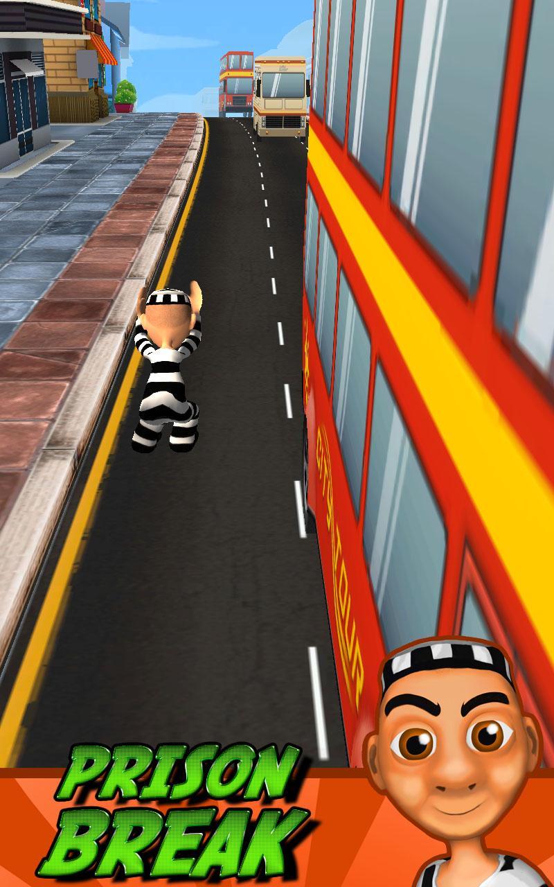 El objetivo aquí es seguir corriendo lo más lejos que pueda para el puntaje máximo en una aventura desbocada. Puede controlar su fugitivo de dibujos animados con gestos de deslizamiento muy simples para que salte de los pasos de deslizamiento o de cambio. Entre la carrera, debe recolectar tantas monedas como sea posible para desbloquear diferentes características en el juego y obtener un puntaje más alto. ¡Pero ten cuidado con el repentino obstáculo en tu camino! ¡Evítelos para escapar de la investigación de los oficiales! No vuelvas a la cárcel.